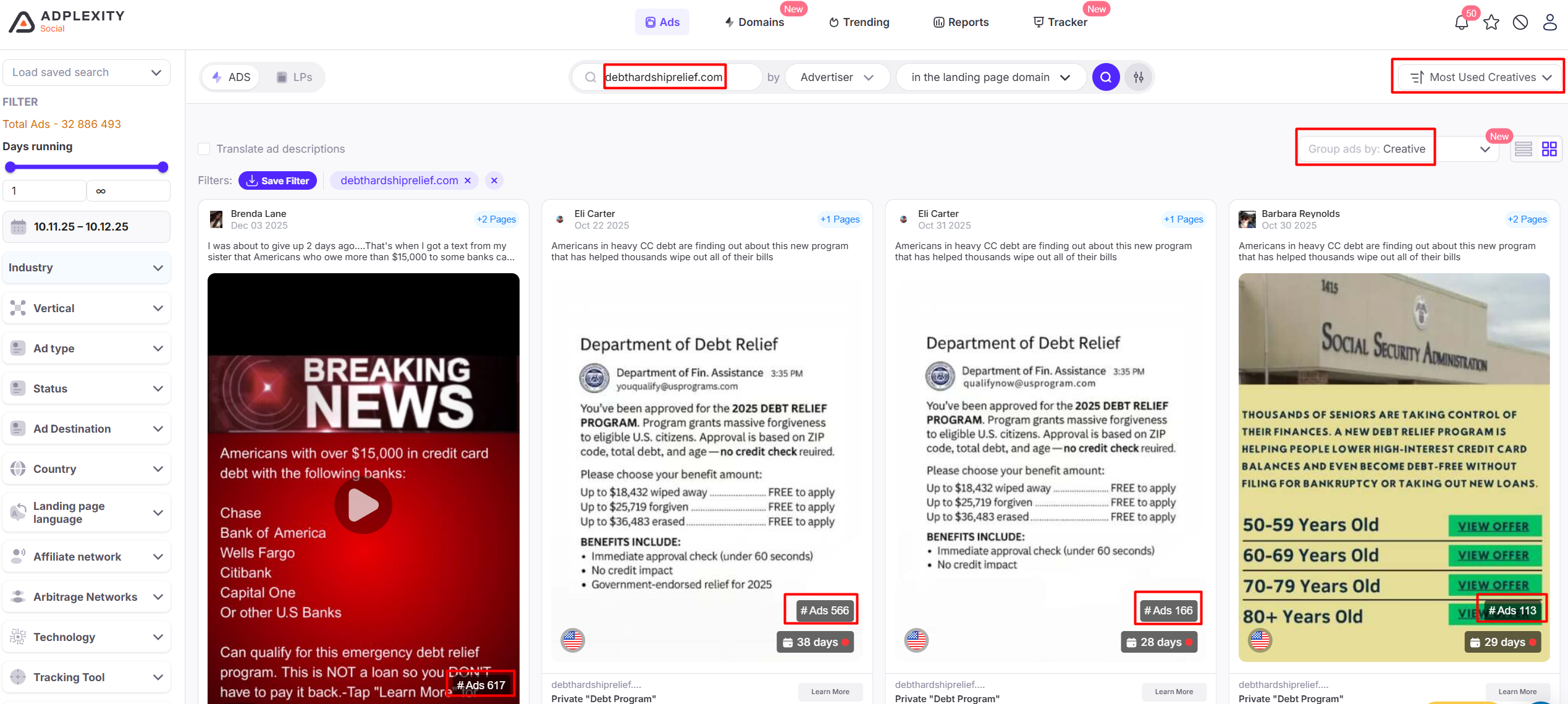 With AdPlexity Social’s advanced filters, you can: