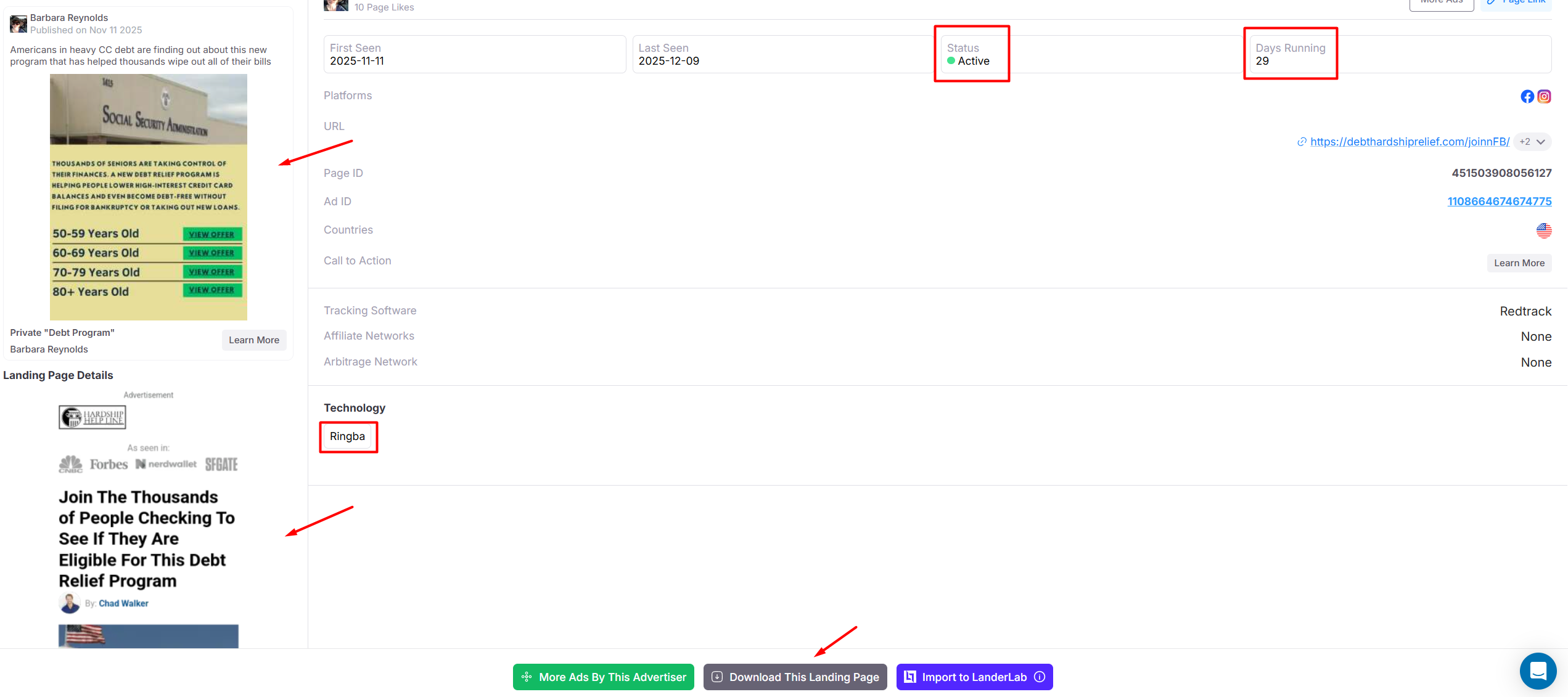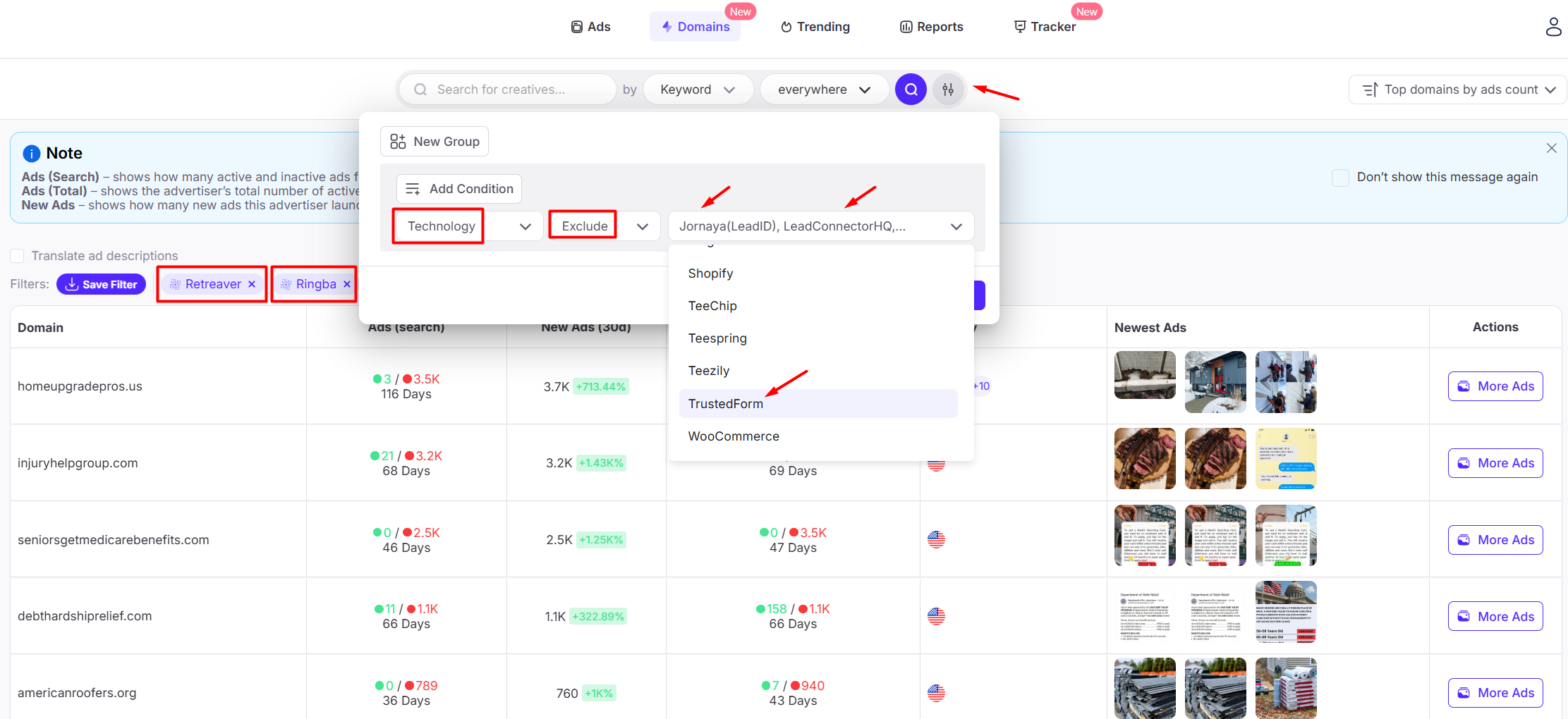 - Filter for ads using Ringba (and similar tools), and