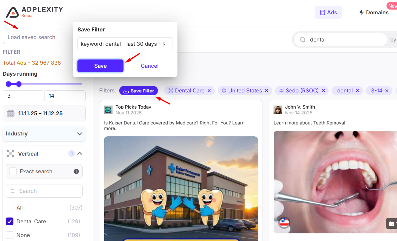 Inside AdPlexity Social, you can filter directly by the major RSOC feeds:
