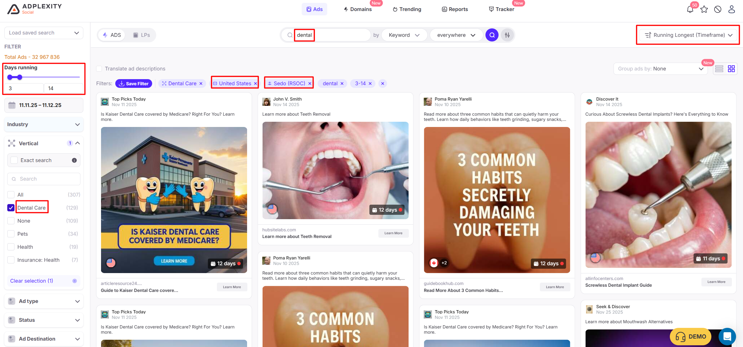 Across 30 million ads collected in the last 30 days, more than 600,000 belong to RSOC. You’re starting from a rich sample.